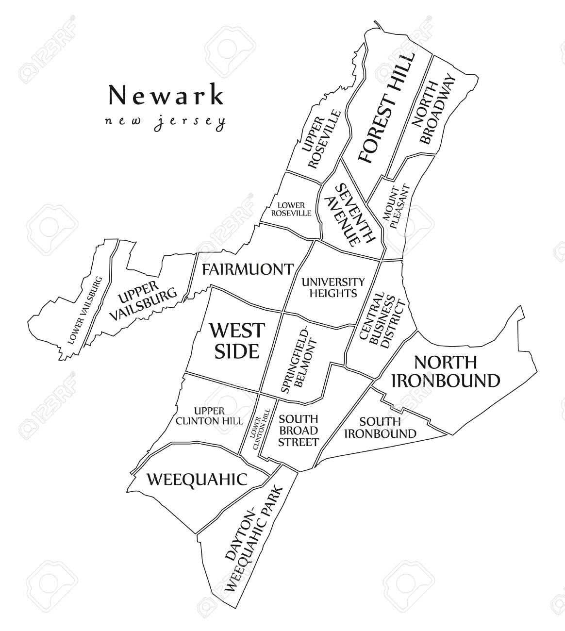 Modern City Map Newark New Jersey City Of The Usa With Neighborhoods And Titles Outline Map Royalty Free Svg Cliparts Vectors And Stock Illustration Image 112118416